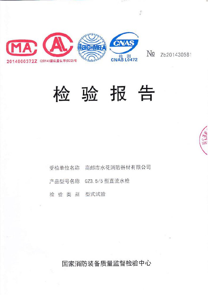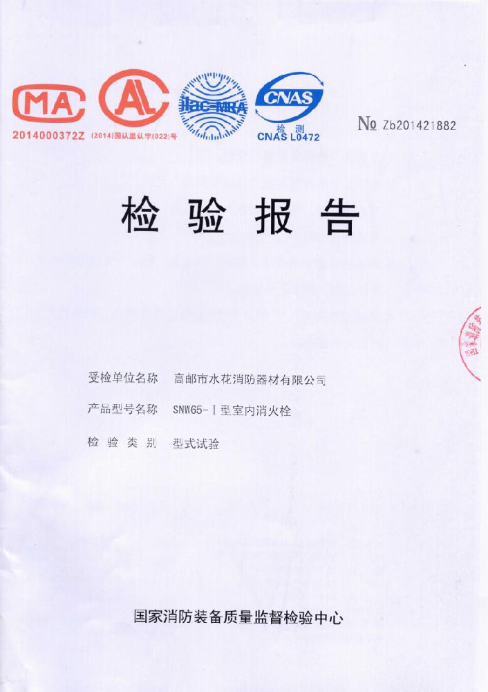我廠創(chuàng)辦于一九七六年六月,現有職工600人,其中各類技術和管理人員68人。擁有固定資產5000萬元,占地面積35000多平方米,建筑面積25000多平方米。建立了完善的質量體系,取得多種“計量合格確認證書”,并成為江蘇及多省的消防協會會員單位。工廠技術力量雄厚,生產和檢測設備齊全,工藝先進。生產“水花”牌水帶接口: KDK65, KD65,KY65,KN65。消防水槍: QZG3.5/7.5, QZ3.5/7.5,QP8/0.7Z泡沫水槍。室內消火栓: SN65, SNW65-I,SNZ65, SNZW65-I。 消防軟管卷盤JPS0.8-19/25。生產的“郵花”牌,消防有襯里水帶:65-8、10、 13、 16、20、 25型; 80-16、 20、25型。水帶接口: KD50、65; KY50、65;KN65。消防水槍: Q2Z3.5/7.5、 5。 室內消火栓: SN65, SNW65-I, SNZ65, SNZW65-I。 并于二零一五年五月通過公安部消防產品合格評定中心3C換版檢驗,獲得以上產品所有的強制認證證書,準予生產和銷售,產品行銷全國各地,深受廣大用戶好評。